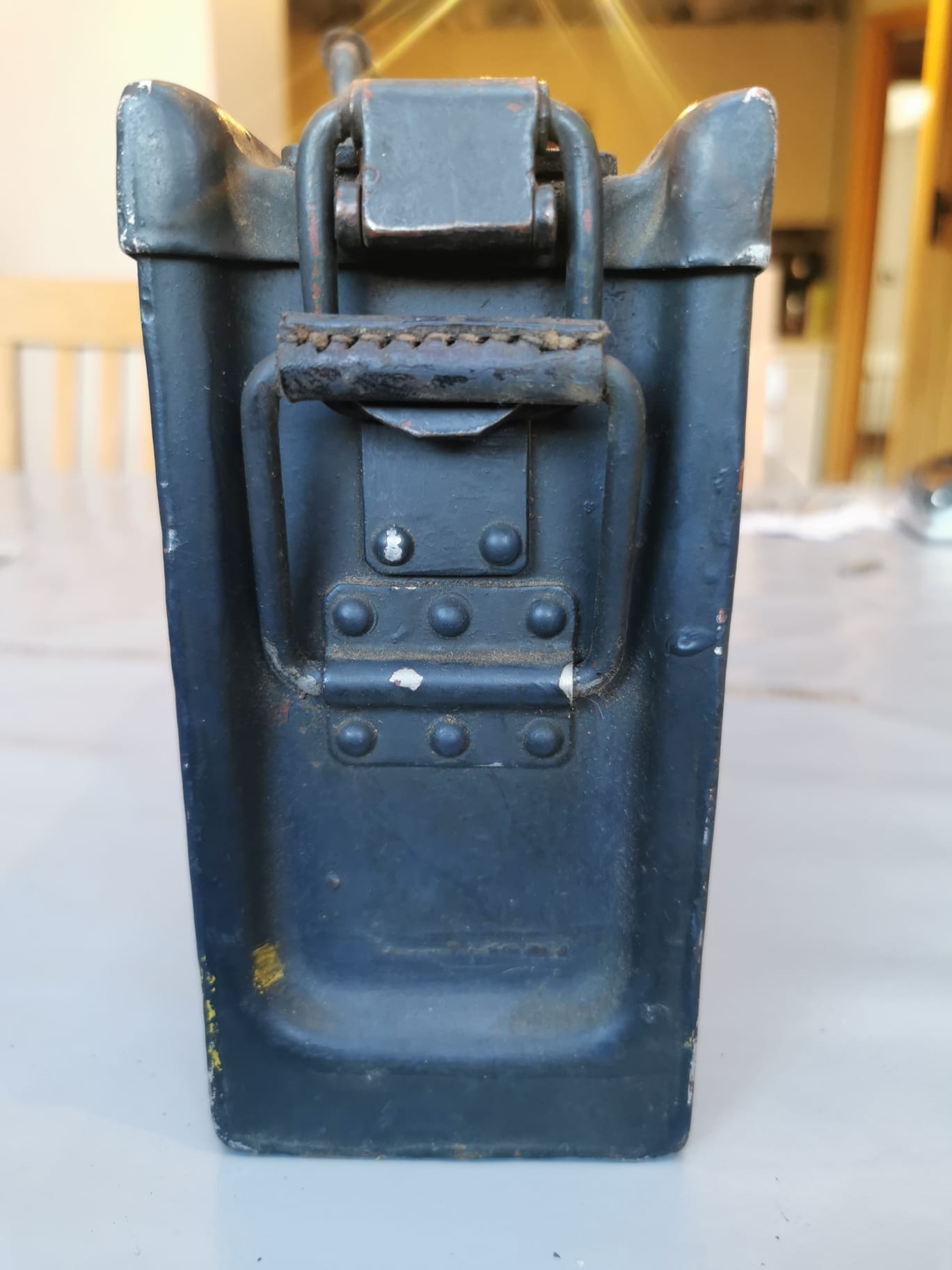 one can has a waffen stamp on the handle, both original cans to the tin, one has more paint than the other