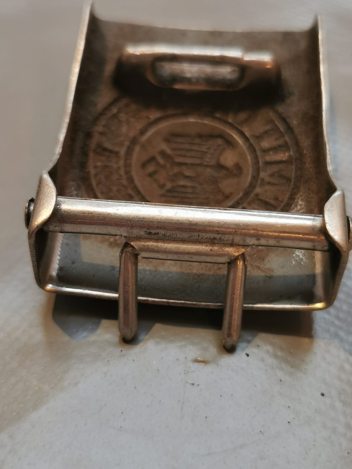 very carefully and well done DE nazified belt buckle so would of been used after the war looks well worn and the back has all its original paint
