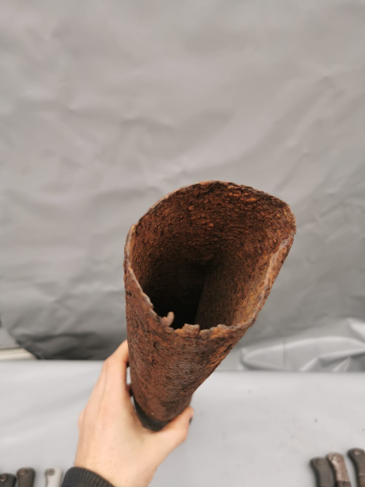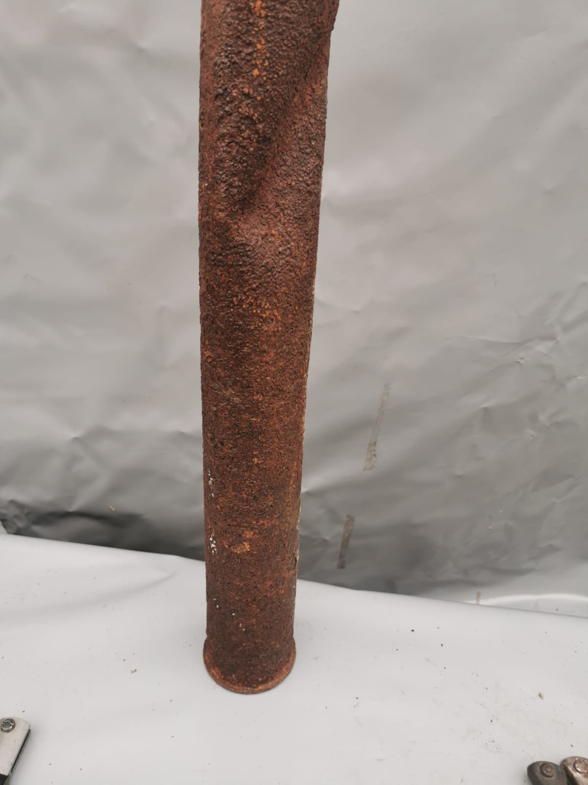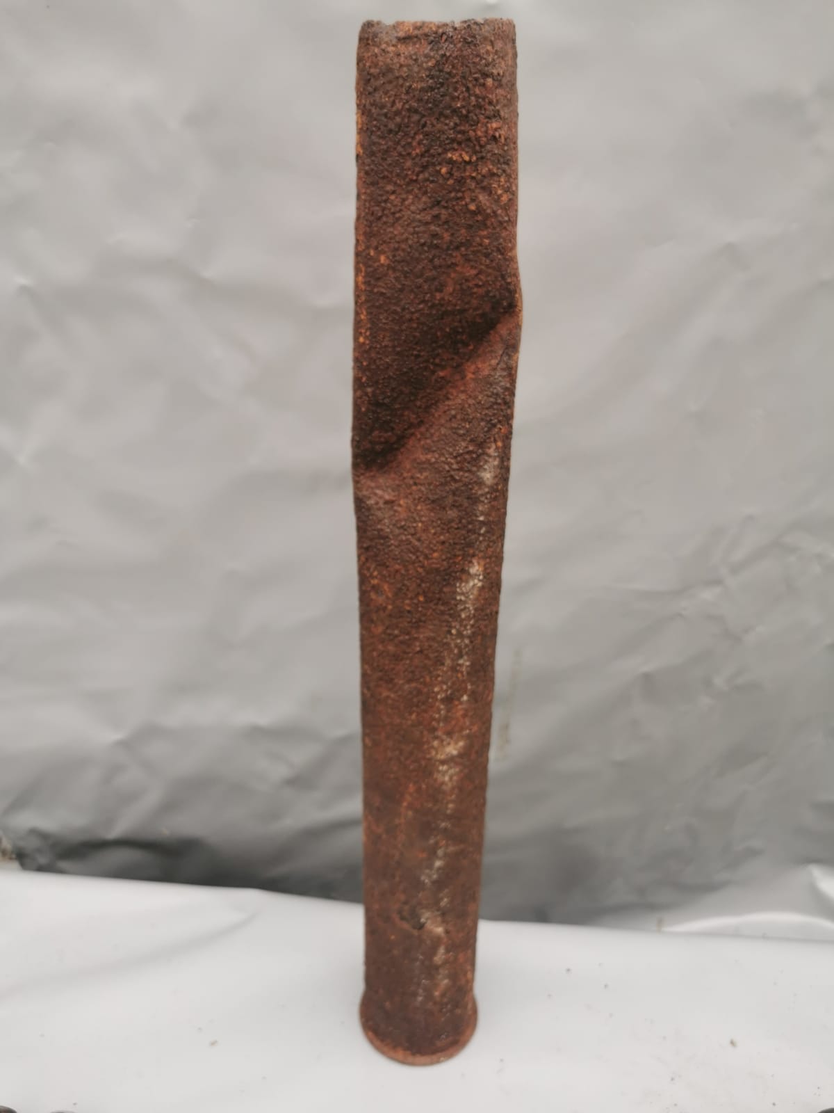 relic shell is in good solid condition its been cleaned and preserved as it was found no loose rust, its taken a big impact from something to bend it so much in the middle